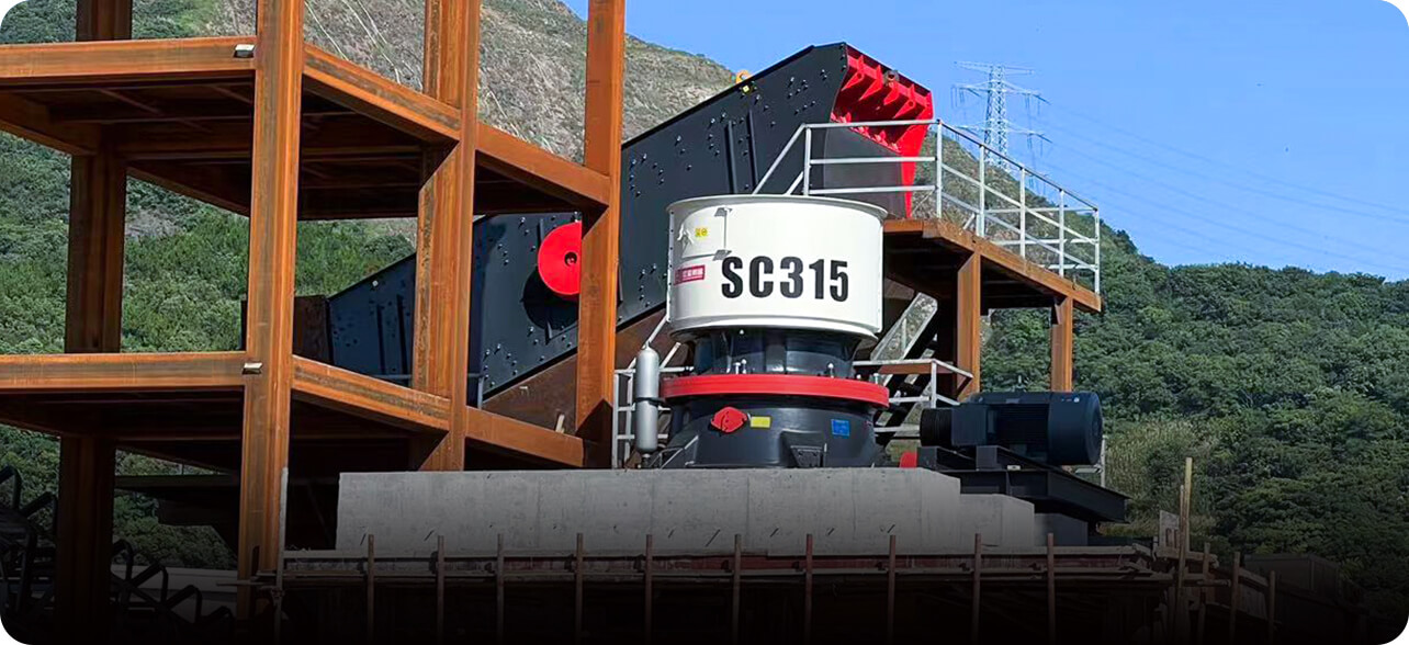 組成設備:給料機、鄂破、反擊破、圓錐破、振動篩、皮帶輸送機、集中電控設備等