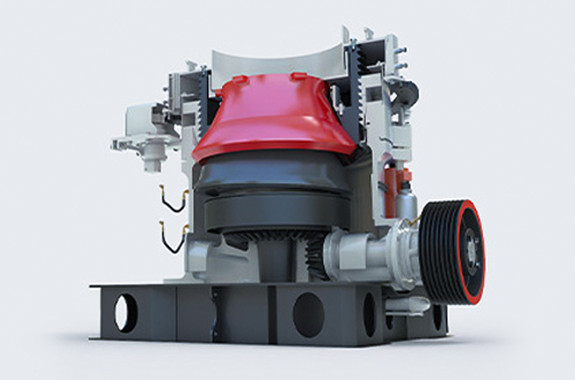 在工作時通過電動機的旋轉帶動帶輪或聯軸器、傳動軸和圓錐部在軸心線下使偏心軸做周期性旋擺運動。在物料從料口進入破碎腔后因受到偏心軸和軋臼壁的相互沖擊擠壓、研磨、揉搓從而產生破碎的作用。液壓保險系統能在機器發生過鐵故障或者悶車現象時通過液壓將支撐套和定錐部排除出故障物,在起到很好的保險作用的同時大大的降低了維修率及提高生產效率。