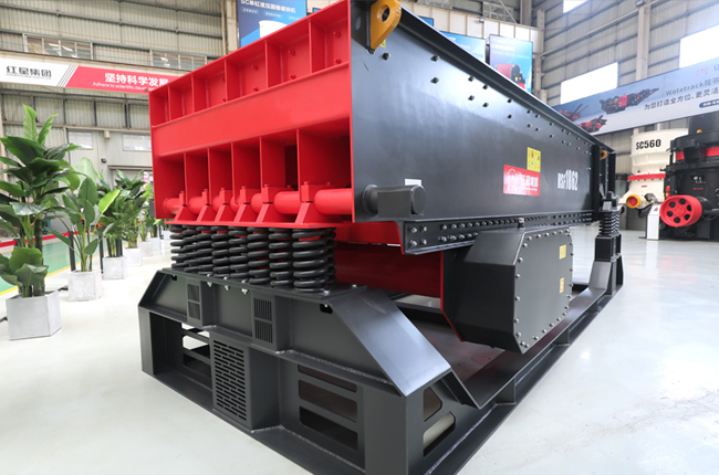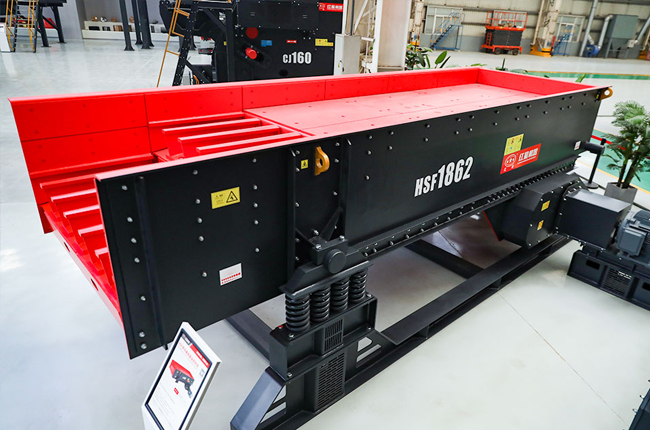 HSF系列重型棒條振動給料機,按照重型工況設計,適用于石料、建材和冶金礦山行業,為大中型初級破碎設備提供給料。結構緊湊,抗沖擊力強,外置偏心塊設計使得給料機振幅調整方便快捷,獨立的耐磨棒條使得棒條間隙可隨意調整,很大程度優化進入破碎機的物料粒度,提高破碎機產能,降低能耗。