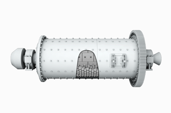 物料由進料裝置經入料中空軸螺旋均勻地進入磨機第一倉,該倉內有階梯襯板或波紋襯板,內裝不同規格鋼球,筒體轉動產生離心力將鋼球帶到一定高度后落下,對物料產生重擊和研磨作用;物料在第一倉達到粗磨后,經單層隔倉板進入第二倉,該倉內鑲有平襯板,內有鋼球,將物料進一步研磨;粉狀物通過卸料箅板排出,完成粉磨作業。