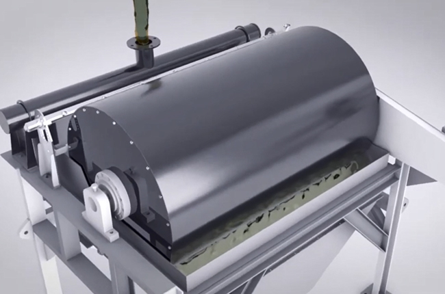 礦漿經給礦箱流入槽體后,在給礦噴水管的水流作用下,礦粒呈松散狀態進入槽體的給礦區。在磁場的作用,磁性礦粒發生磁聚而形成“磁團”或“磁鏈”,“磁團”或“磁鏈”在礦漿中受磁力作用,向磁極運動,而被吸附在圓筒上。 由于磁極的極性沿圓筒旋轉方向是交替排列的,并且在工作時固定不動,“磁團”或“磁鏈”在隨圓筒旋轉時,由于磁極交替而產生磁攪拌現象,被夾雜在“磁團”或“磁鏈”中的脈石等非磁性礦物在翻動中脫落下來,終被吸在圓筒表面的“磁團”或“磁鏈”即是精礦。精礦隨圓筒轉到磁系邊緣磁力的弱處,在卸礦水管噴出的沖洗水流作用下被卸到精礦槽中,如果是全磁磁輥,卸礦是用刷輥進行的。非磁性或弱磁性礦物被留在礦漿中隨礦漿排出槽外,即是尾礦。