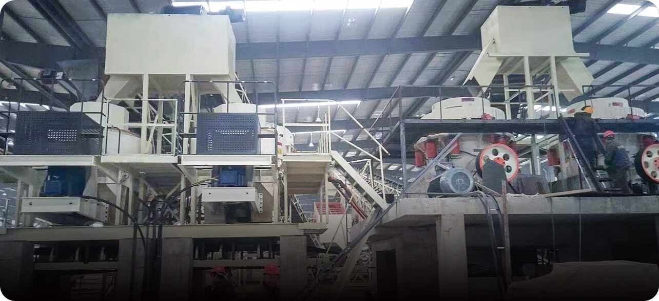 組成設(shè)備:給料機、鄂破、反擊破、圓錐破、制砂機、振動篩、洗砂機、皮帶輸送機、集中電控設(shè)備等